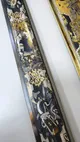 Клинки и ножны этого меча выполнены из драгоценных металлов: никеля, золота высшей пробы (толщина 10 мкм), а также украшены авторской ручной гравировкой. Детали, подчеркнутые техниками чернения, синения и эмали, добавляют мечу неповторимый шарм. Исключительное внимание к деталям не оставит равнодушным даже самого взыскательного заказчика.